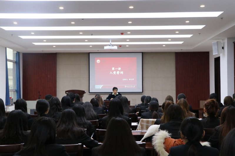 此次培训组织了4讲专题党课,1次十佳大学生事迹报告会,院党委书记李文章、党委副书记王颖群、英语系党支部书记李笑、俄语系、国教、语言训练中心联合党支部书记张力、十佳大学生黄天宠结合学生思想、学习和工作实际,分别围绕《入党誓词》、《新时代、青年大学生你们准备好了吗》、《学习十九大——中国共产党的新时代“实现中华民族伟大复兴”的战略安排》和《如何做好新时代青年大学生》进行了系统讲解,引导全体学员对现阶段党的理论知识,中国特色社会主义理论、党的十九大精神等内容进行更为深入的学习,对青年大学生的使命和责任提出了新要求,要提高党性修养,成长成才,为祖国建功立业。