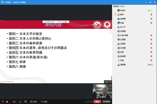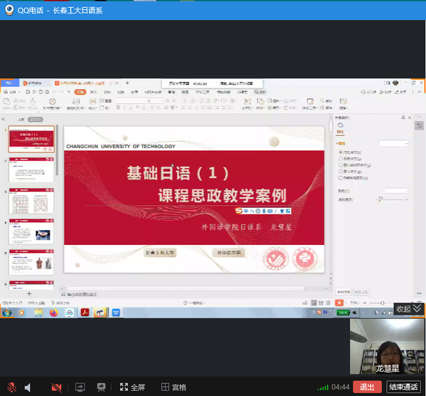 关于开展课程思政建设集中研讨活动的通知,为了进一步学习贯彻落实教育部印发的《高等学校课程思政建设指导纲要》,日语系制定了关于开展课程思政建设活动方案,并于10月9日晚7:30, 在线上QQ工作群平台,召开了“课程思政优秀案例观摩交流会”,日语系主任曾妍主持会议,日语系全体教师参加,副院长周爽观摩了交流会。