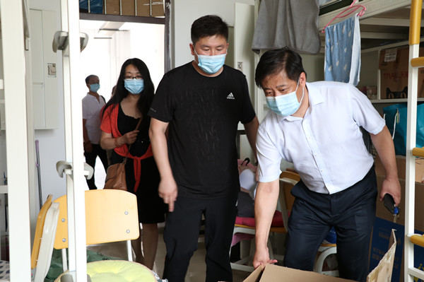 领导深入学生寝室,与返校毕业生亲切交谈,嘱咐大家注意身体、保证安全,并希望所有毕业生在疫情之后常回母校看看。同时,要求各位导师、毕业班辅导员,要把工作做细,确保重要物品邮寄安全无误;要与毕业生保持经常联系,关心他们的生活、就业等情况,持续做好服务工作。