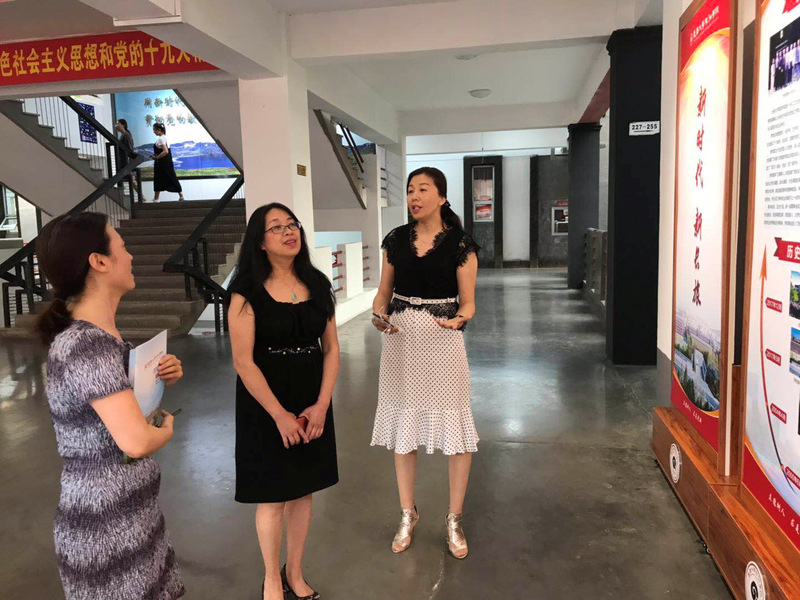 的赵副校长、程书记以及董事长助理杨威等陪同彭又新院长参观了学校的新闻、党建宣传栏,一同观看了长旅的招生宣传片和献给祖国70年华诞的歌曲短片《我爱你,亲爱的祖国》。
