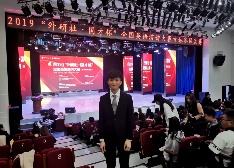 在吉林省演讲复赛中,来自全省近30所高校的43名选手参加了本次比赛。面对众多名校选出的优秀选手,并且其中多数选手来自各校英语专业,我校易龙同学发挥出色,以地道的口语,精妙的构思,睿智的思辨能力和卓越的现场表现赢得了评委和观众们的认可,斩获一等奖。