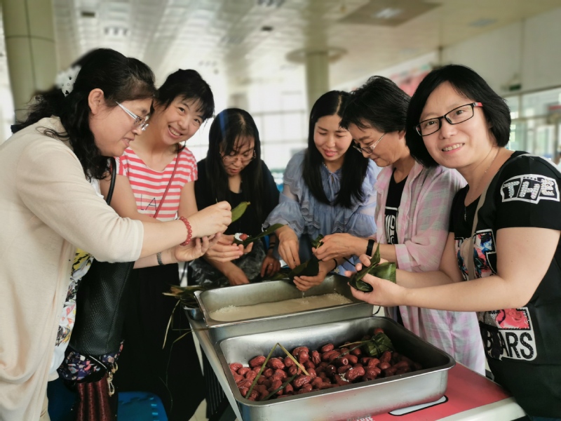6月5日下午,皇冠现金游戏网 组织全体教职工开展了端午“粽香传真情”活动。林园校区食堂为此次活动精心准备了优质的糯米、大大的红枣、棕绳方便袋等等,师傅们手把手交,老师们认认真真学,现场充满了祥和的节日气氛。