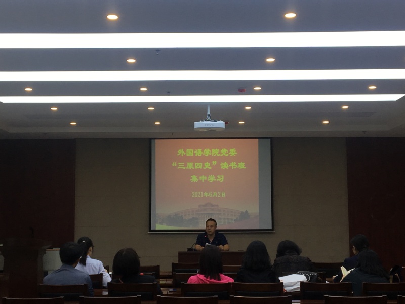 党委《“三原四史”读书班课表(第一轮)》学习安排,本次集中学习安排了八讲:英语系党支部书记李笑领学了《中国共产党简史》中的“中华人民共和国的成立和社会主义制度的建立”篇章,介绍了新中国成立后进行的社会变革,以及取得的伟大的历史性胜利;日语系党支部书记赵春辉领学了“社会主义建设的探索和曲折发展”篇章,讲述了党在努力探索发展道路过程中总结出的宝贵经验,体现出的奋斗精神;俄语系、国教、语言训练中心联合党支部书记张力领学了“伟大历史转折和中国特色社会主义的开始”篇章,从重要会议、重大举措入手,阐述了中国特色社会主义的开创和深刻意义;学生党支部书记刘明慧领学了“把中国特色社会主义全面推向21世纪”篇章,对邓小平理论体系中关于党史的重要论述进行梳理;团委书记、学生工作办公室主任朱博领学了“在新的形势下坚持和发展中国特色社会主义”篇章,带领大家重温了中国共产党人的初心和使命;党政办公室主任葛蔓领学了“中国特色社会主义进入新时代”篇章,带领大家回顾了中国特色社会主义的发展历程;英语系主任刘宇领学了《毛泽东 邓小平 江泽民 胡锦涛关于中国共产党历史论述摘编》中的“毛泽东重要论述”篇章,对党的光荣革命传统和宝贵经验进行了梳理;日语系主任曾妍领学了“邓小平重要论述”篇章,重点从1942年整风运动学习邓小平同志对中国共产党党史的理解与思考。