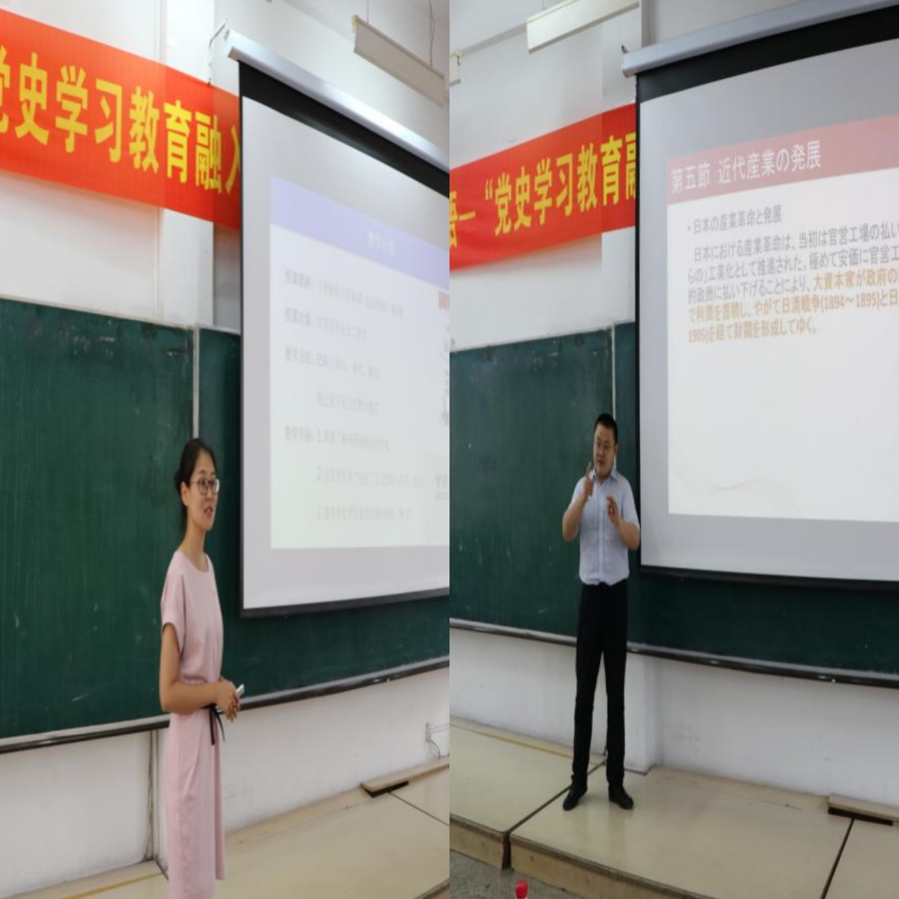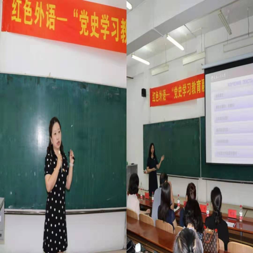 党委高度重视,从英日俄各专业及公共外语教学部选拔了优秀教学骨干主讲,并就如何将党史学习教育更好融入外语课程教学,进行了认真的备课,组织了预审和研讨,力求为全院教师做好示范。课堂上,来自英语系的赵艳宇老师、俄语系的张晓薇老师、日语系的宋卓时老师、公共外语教学部的赵雪老师,先后就《英语国家社会与文化1》《高级俄语1》《日本概况2》《大学英语》四门课程进行了精彩展示,分别从不同的角度深入挖掘、融入了党史元素,充分体现了“红色外语”的主题,为全院教师在教育教学中不断深化党史学习教育和课程思政建设作出了榜样,得到了与会领导、教师的充分肯定。