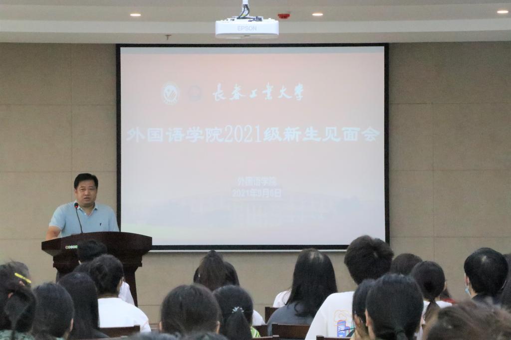 对2021级新生的到来表示欢迎,并希望各位同学通过四年的学习,能够外韵毓秀,语萃添香,修德立身,学贯中西。