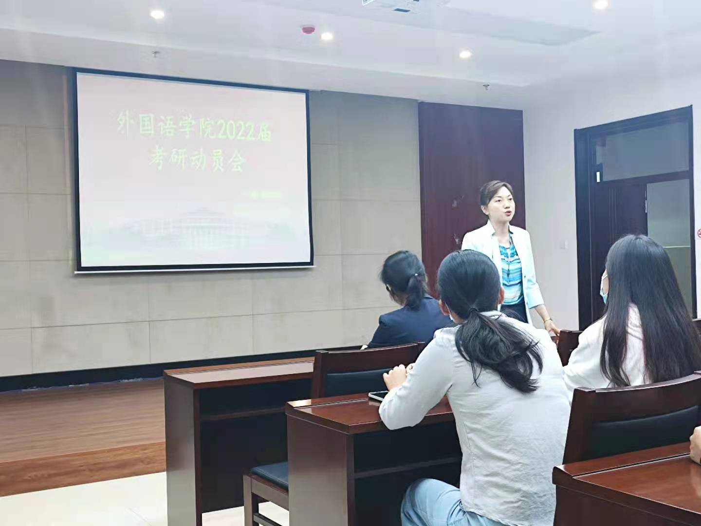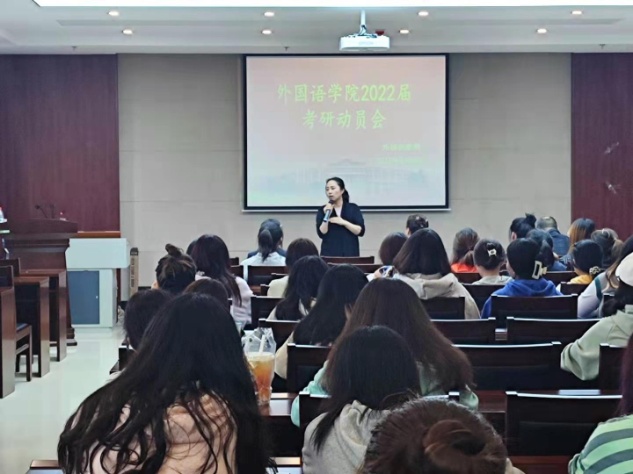 于9月16日中午12:40在北湖校区东区主楼435会议室召开“2022届毕业生考研动员会”。副院长王轶、副院长曾妍、俄语系主任张美、英语系支部书记兼研究生辅导员李笑及全体毕业生参加会议。