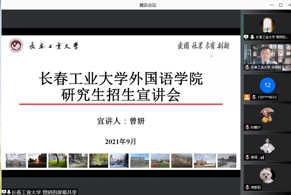 副院长曾妍、英语系支部书记兼研究生辅导员李笑和日语系骨干教师宋卓时,通过腾讯会议平台,为长春工业大学人文信息皇冠现金网