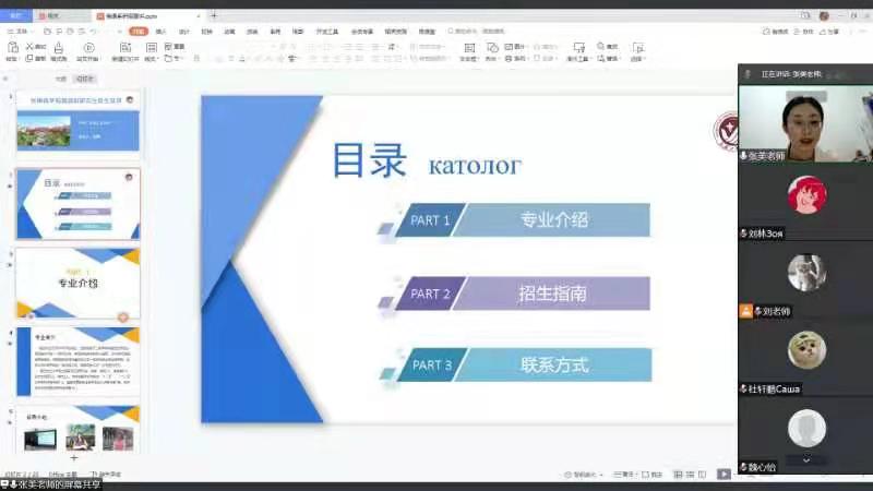 英语系主任毕晨慧、日语系主任崔伟和俄语系主任刘继彬分别主持三个专业的线上会议,18、19级学生参加了本次宣讲会。
