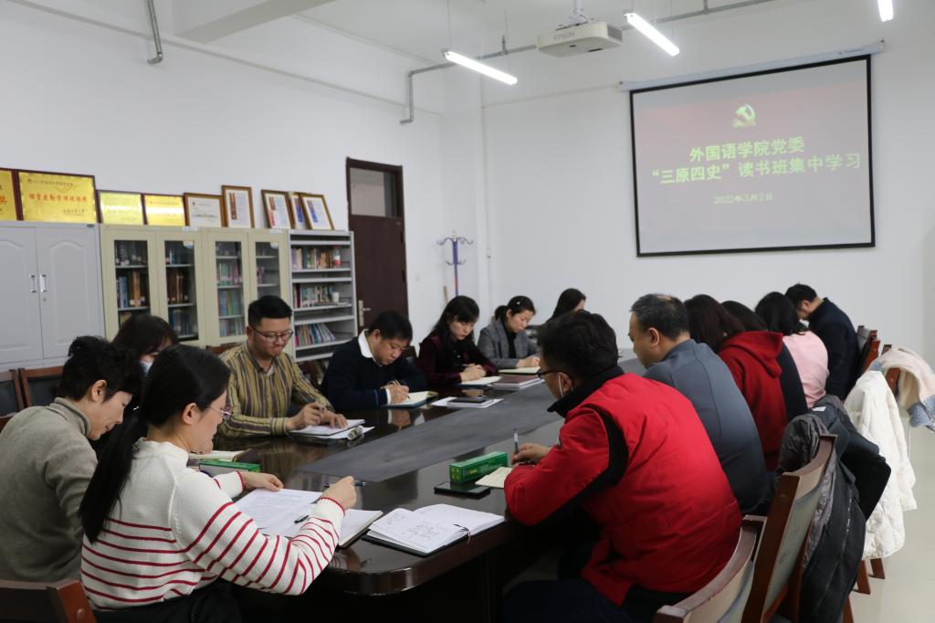 办公室主任葛蔓领学了“‘两弹一星’精神”、英语系主任刘宇领学了“改革开放”精神、俄语系主任张美领学了“抗震救灾”精神,语言训练中心主任李光哲领学了“抗美援朝”精神,公共外语教学部副主任张羽华领学了“脱贫攻坚”精神。通过学习,进一步提升了大家对党的伟大精神的理解和认识,坚定了永远跟党走的信念和信心。