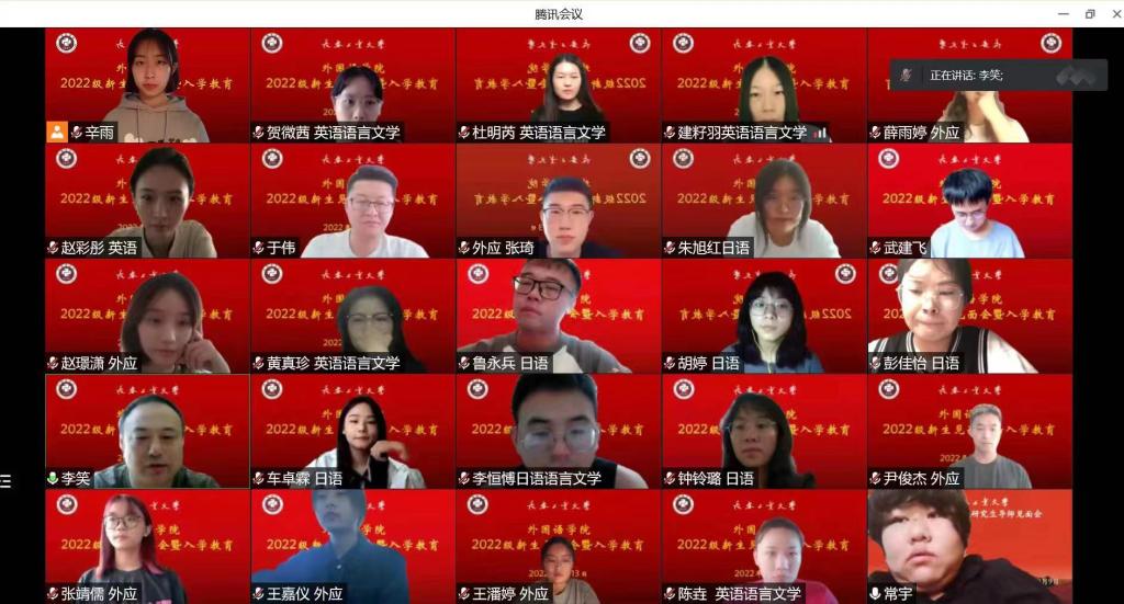 党委副书记于伟,研究生辅导员李笑,2022级全体研究生及家长通过腾讯视频参加会议,会议由研究生辅导员李笑主持。