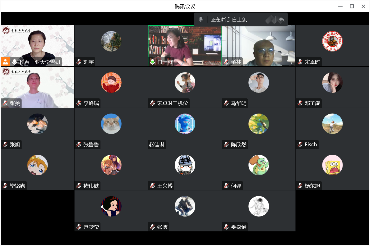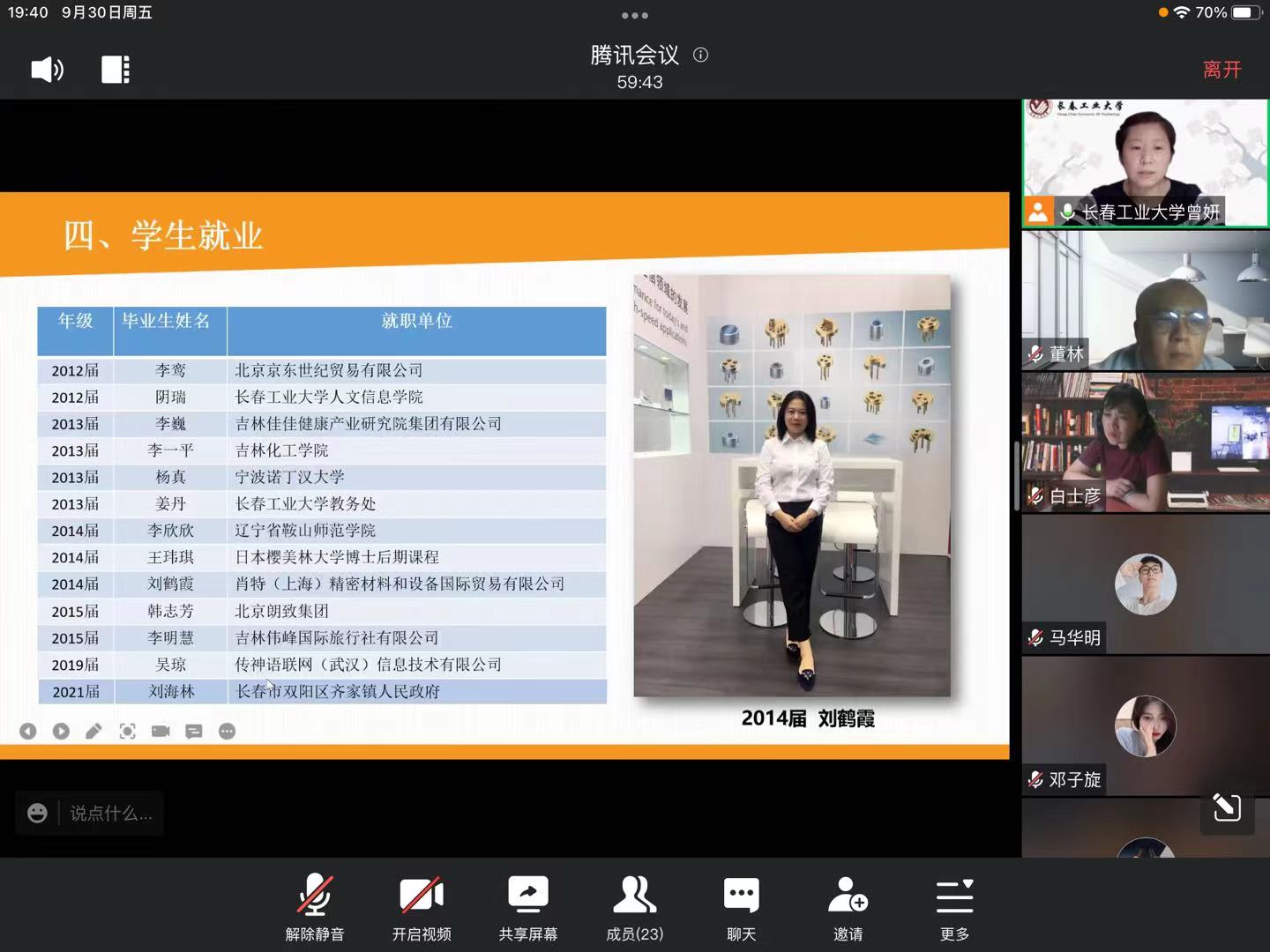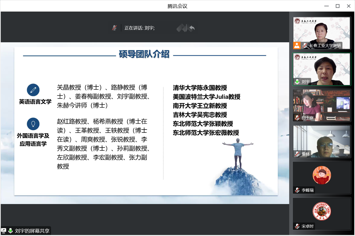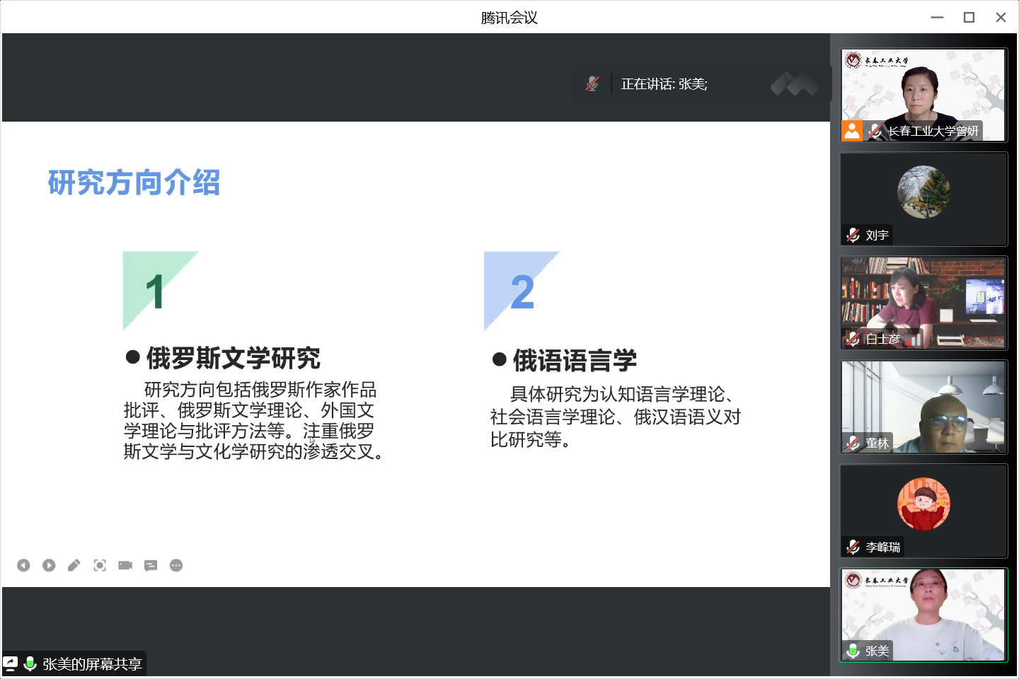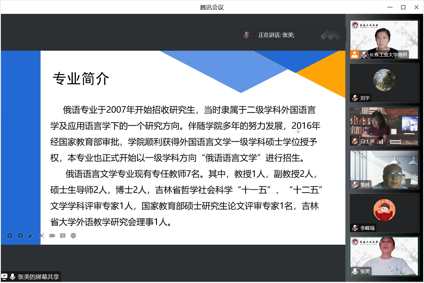 副院长曾妍、英语系主任刘宇和俄语系主任张美,在腾讯会议平台,为长春人文皇冠现金网
