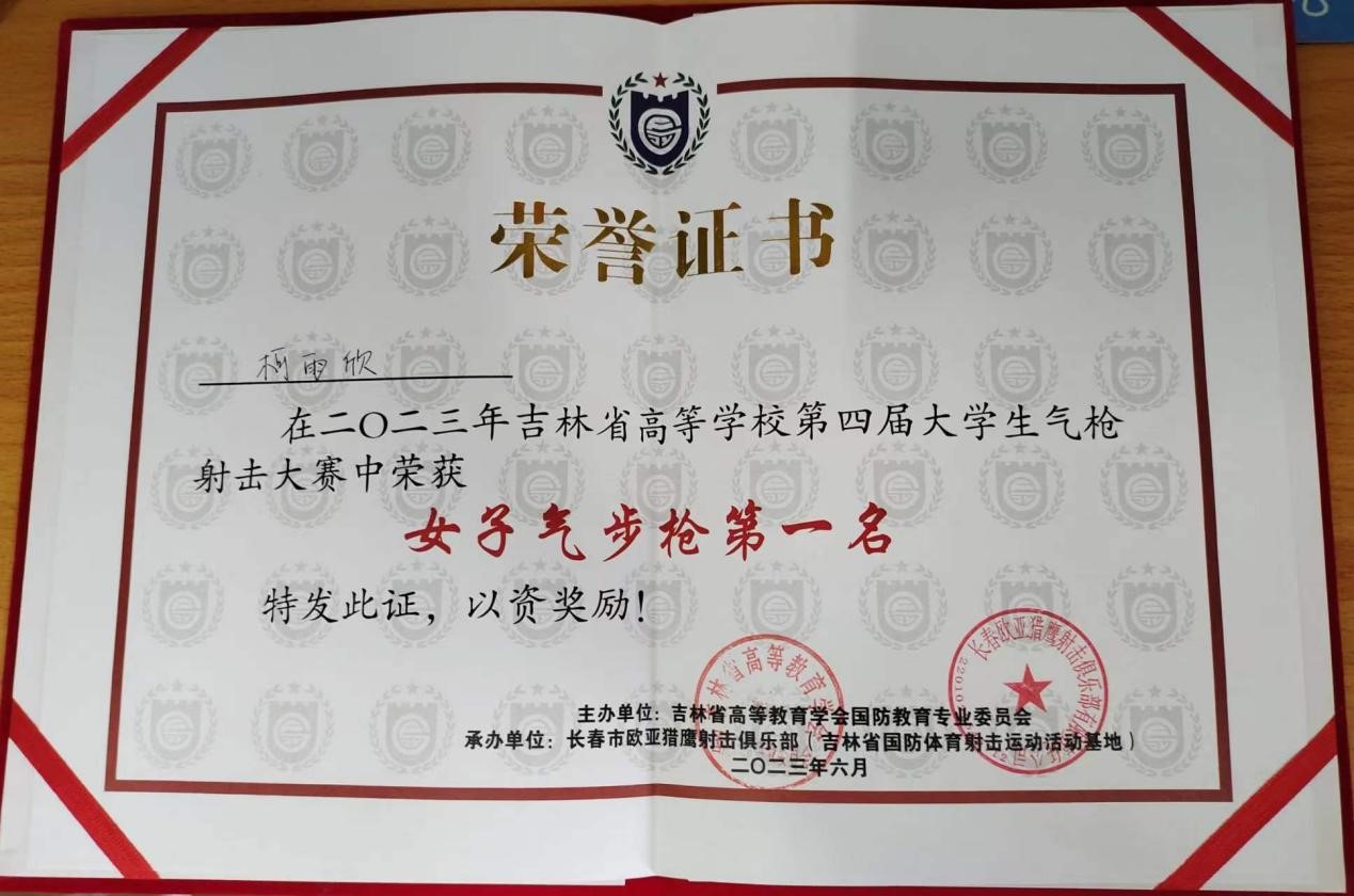 柯雨欣同学经过激烈角逐,在一众选手中脱颖而出。比赛过程中,柯雨欣同学不骄不躁,沉稳淡定。瞄准时下盘沉稳,屏气凝神。力求三点一线,射击时心意合一,精准稳定,力求弹无虚发。最后荣获本次大赛女子气步枪第一名和女子气手枪第三名的好成绩。