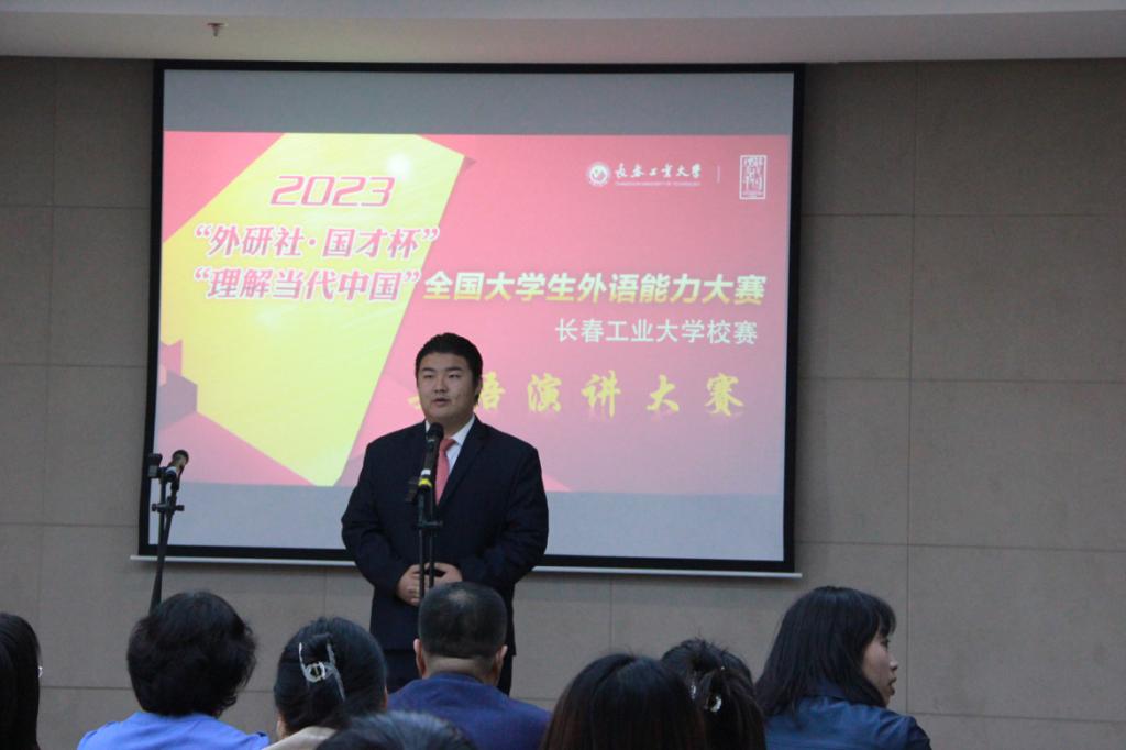 从2023年7月份开始,组织全校学生进行赛事报名,提交演讲视频,提交演讲稿等多轮指导与选拔,13名选手脱颖而出进入我校赛区决赛。9月27日下午13:30,长春工业大学赛区英语演讲决赛在北湖校区东区教学主楼435正式开赛。本次比赛特邀皇冠现金游戏网