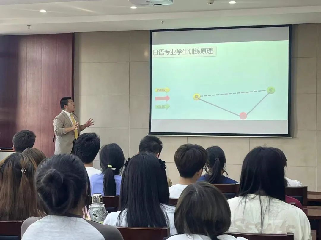 日语专业由日语系主任宋卓时进行介绍,他从专业情况、就业前景、未来趋势三个方面做出了详细报告。宋老师提出,日语专业旨在培养综合素质良好,国际视野开阔,创新能力较强的高素质、应用型日语专业人才。特别强调学生在毕业时应具有扎实的日语基本功和专业能力,熟练的日语听说读写译技能与良好的交流与沟通技巧,拥有较强的思辨能力与创新能力,能综合运用所学知识与技能在外贸、教育、文化等领域从事教学、翻译、商务、管理等相关工作。希望同学们能在皇冠现金游戏网