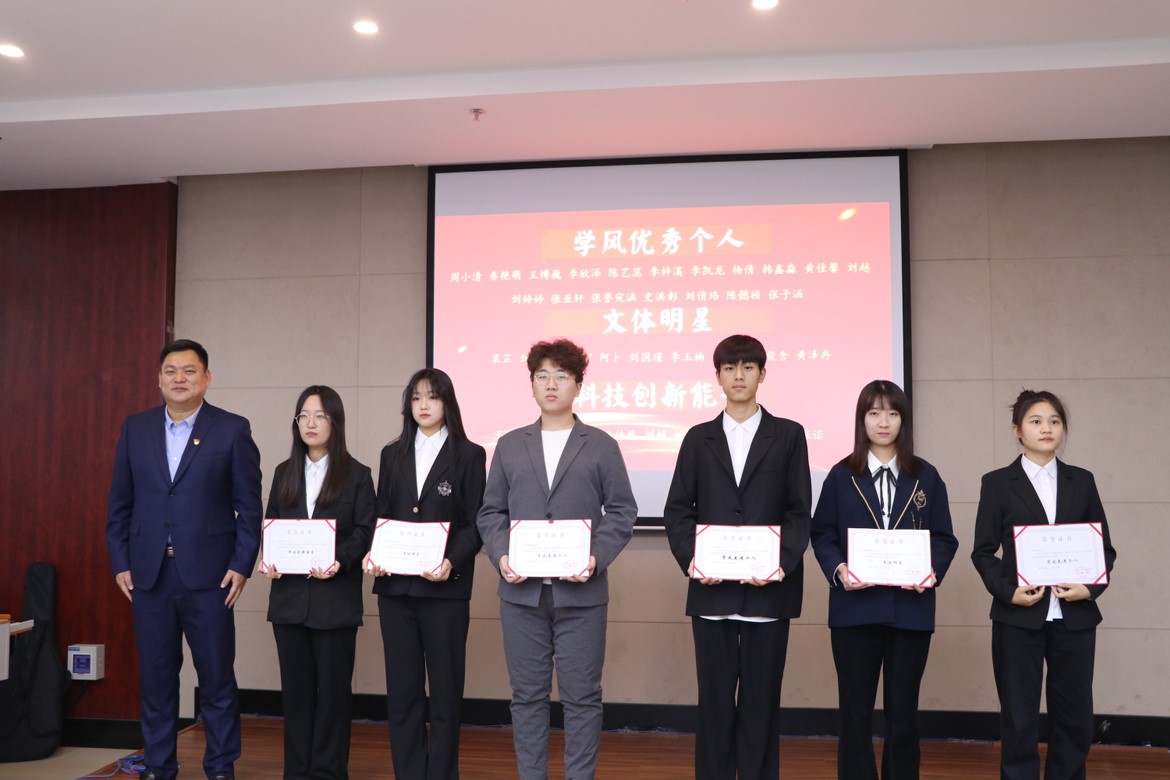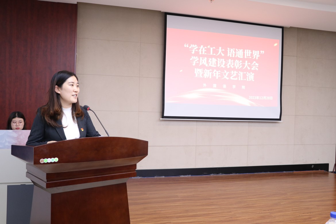 在12月28日于435会议室开展了“学在工大,语通世界”学风建设表彰大会暨迎新年文艺汇演。参加本次会议的领导、嘉宾有长春工业大学校团委副书记邵捷,长春工业大学学生工作处副处长孙兆龙,长春工业大学学生心理健康教育和咨询中心主任于伟,皇冠现金游戏网