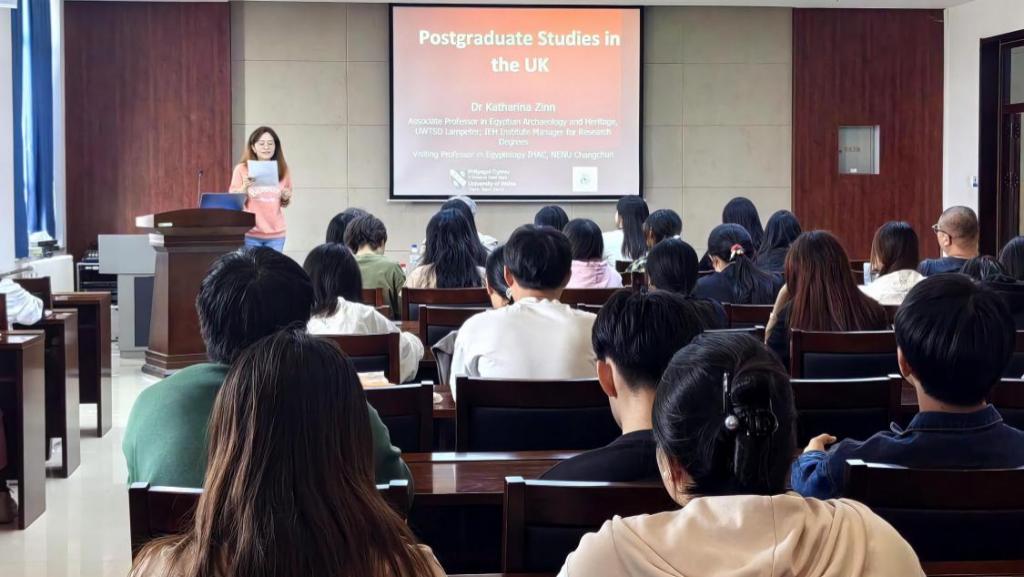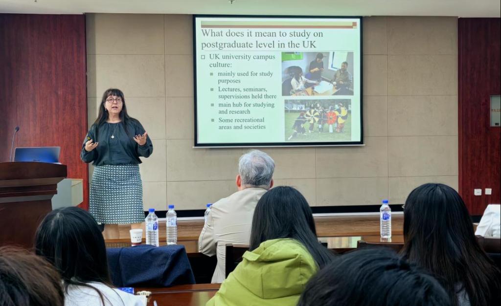 学位研究所负责人。Katharina Zinn教授做了题为“Postgraduate study in UK”的讲座,为同学们详细介绍了去英国读研究生的相关问题,包括可能遇到的文化冲击,英国研究生的类型、学制和课程及如何申请和需要准备的材料等。介绍完毕后,Katharina Zinn教授还解答了同学们的疑惑,亲切地与同学生们进行了互动。