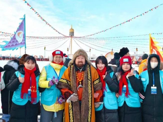 今年冬捕节期间,松原市设立27个“爱在新雪季志愿服务驿站”,1300余名志愿者参与服务。金一鸣同学经过选拔,担任日语翻译志愿者。