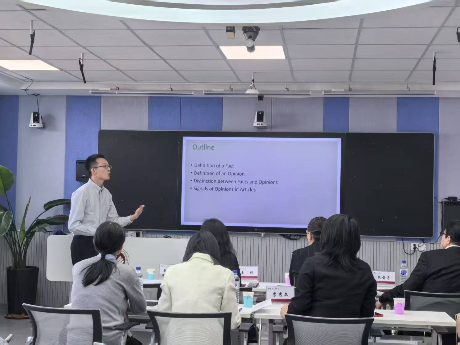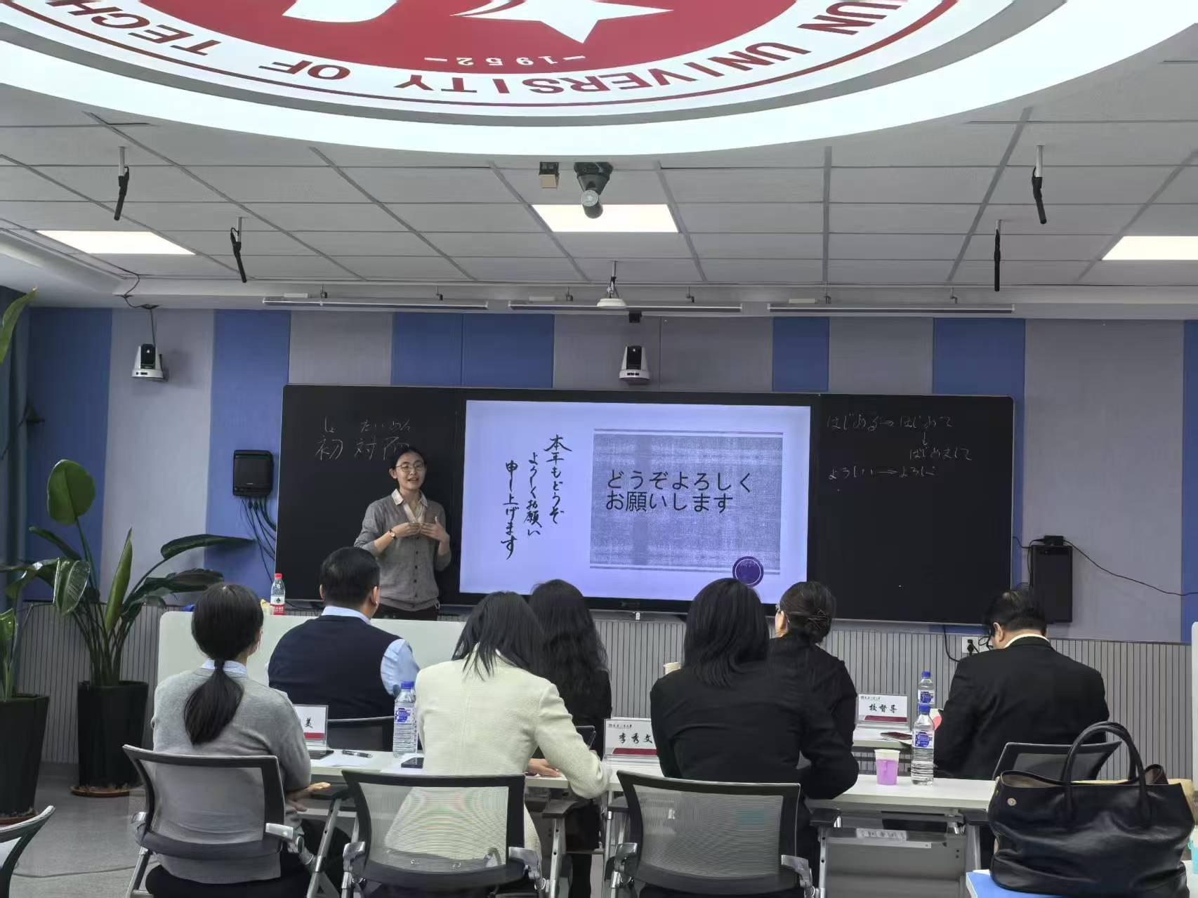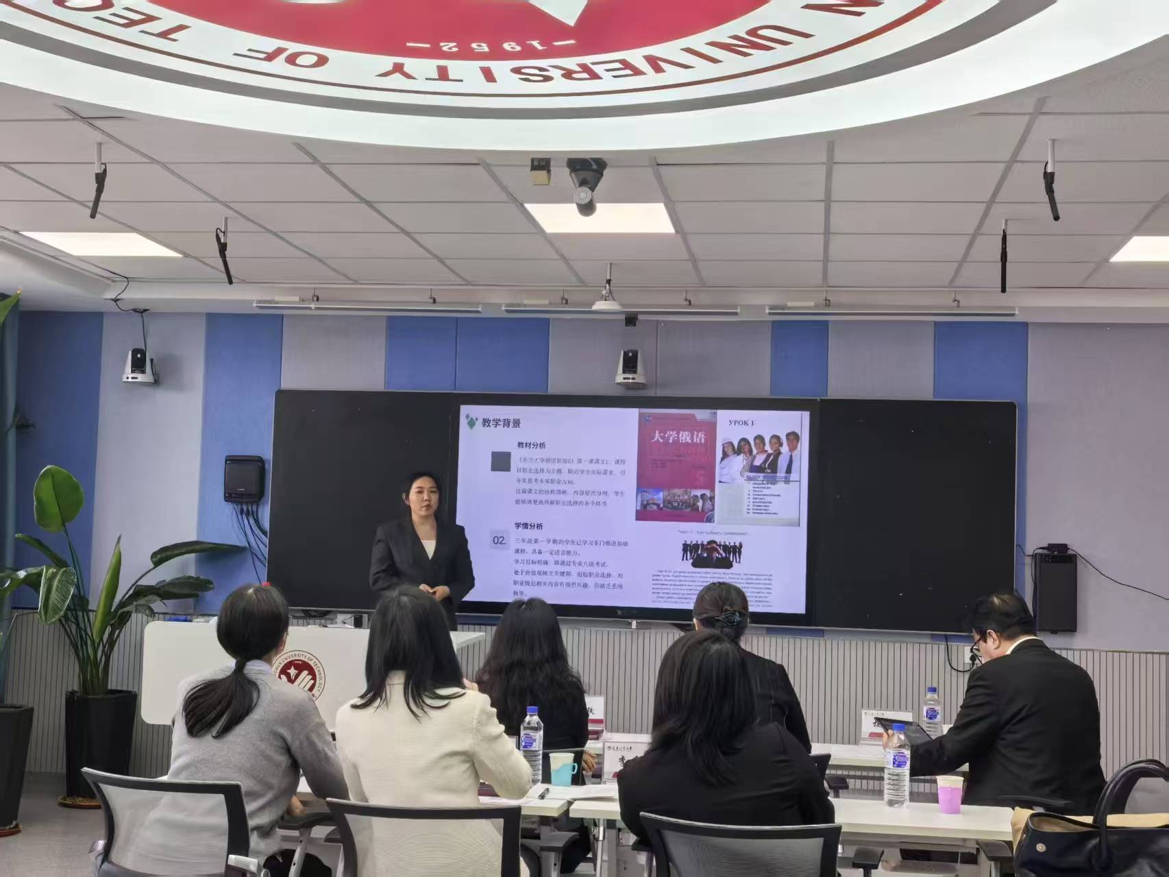 党委书记张子宇,院长王轶,副院长李秀文、曾妍,俄语系主任张美担任评委,2024年底新入职的两位青年教师全程旁听学习。