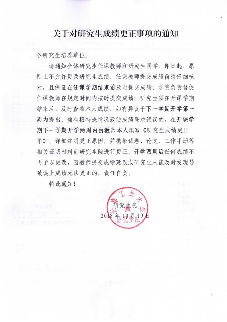 关于对研究生成绩更正事项的通知如下: