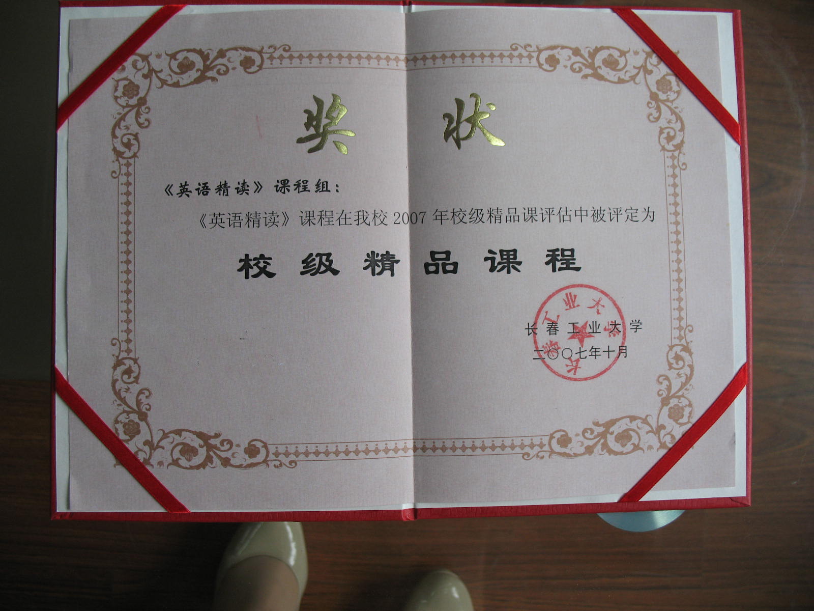 2007年10月,《英语精读》课程组在长春工大2007年校级精品课评估中被评定为“校级精品课程”