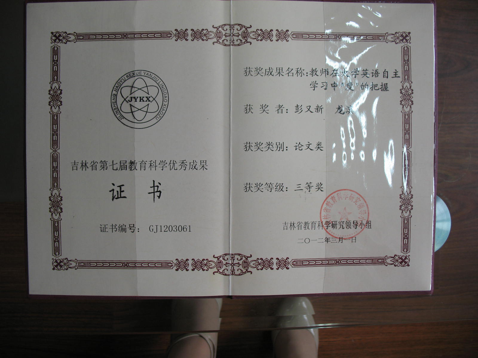 彭又新、龙滨老师获得“吉林省第七届教育科学优秀成果论文类三等奖” 2012年3月1日皇冠现金游戏网