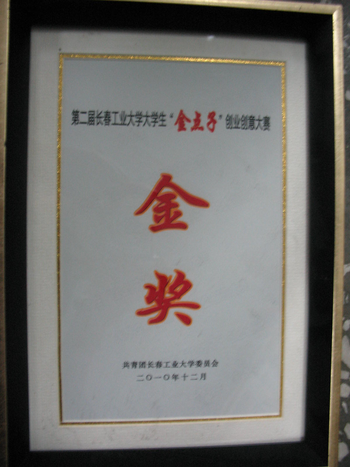 获得第二届长春工业大学大学生“金点子”创业创意大赛金奖。