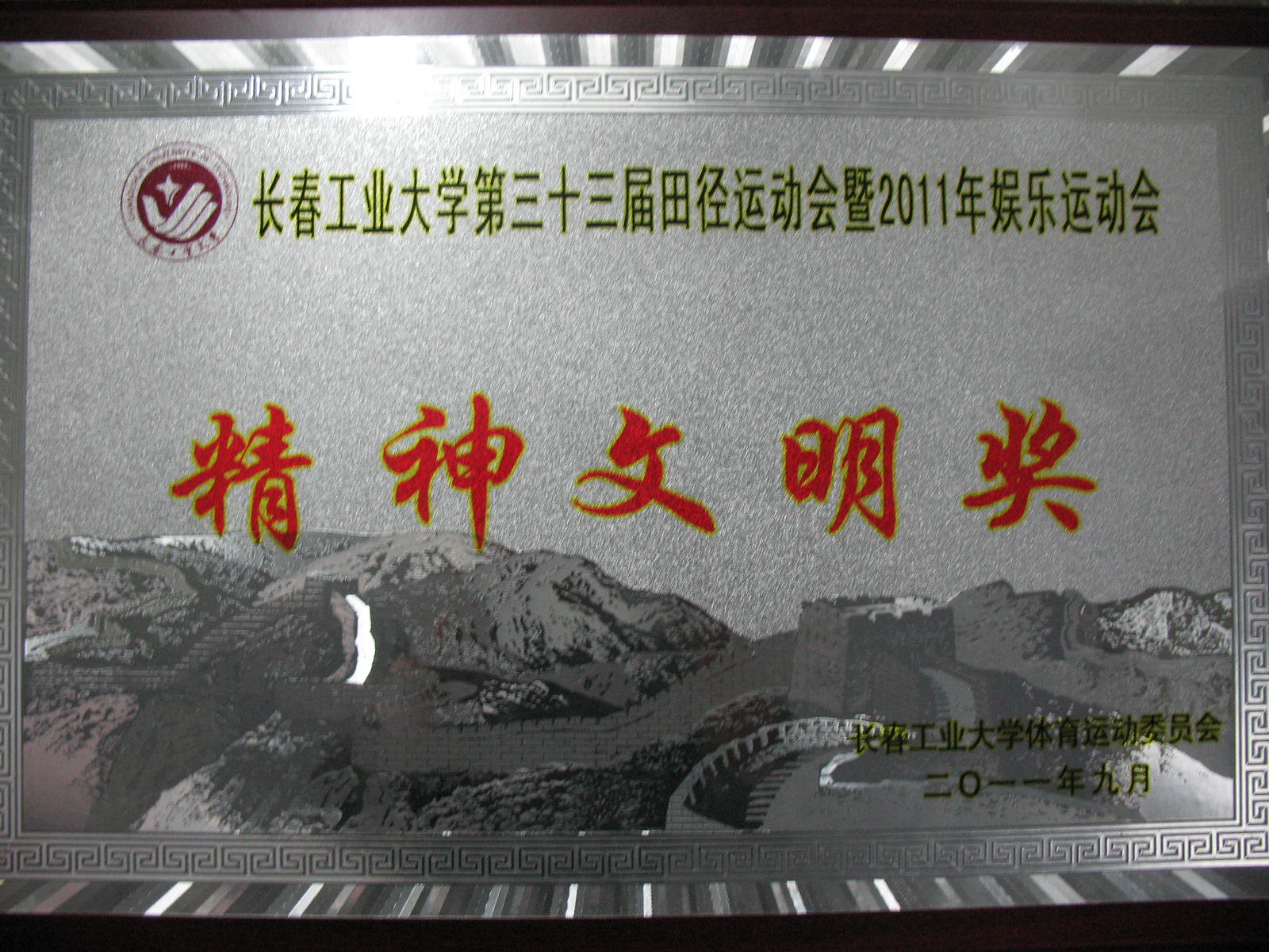 获得长春工业大学第三十三届田径运动会暨2011年娱乐运动会“精神文明奖”。