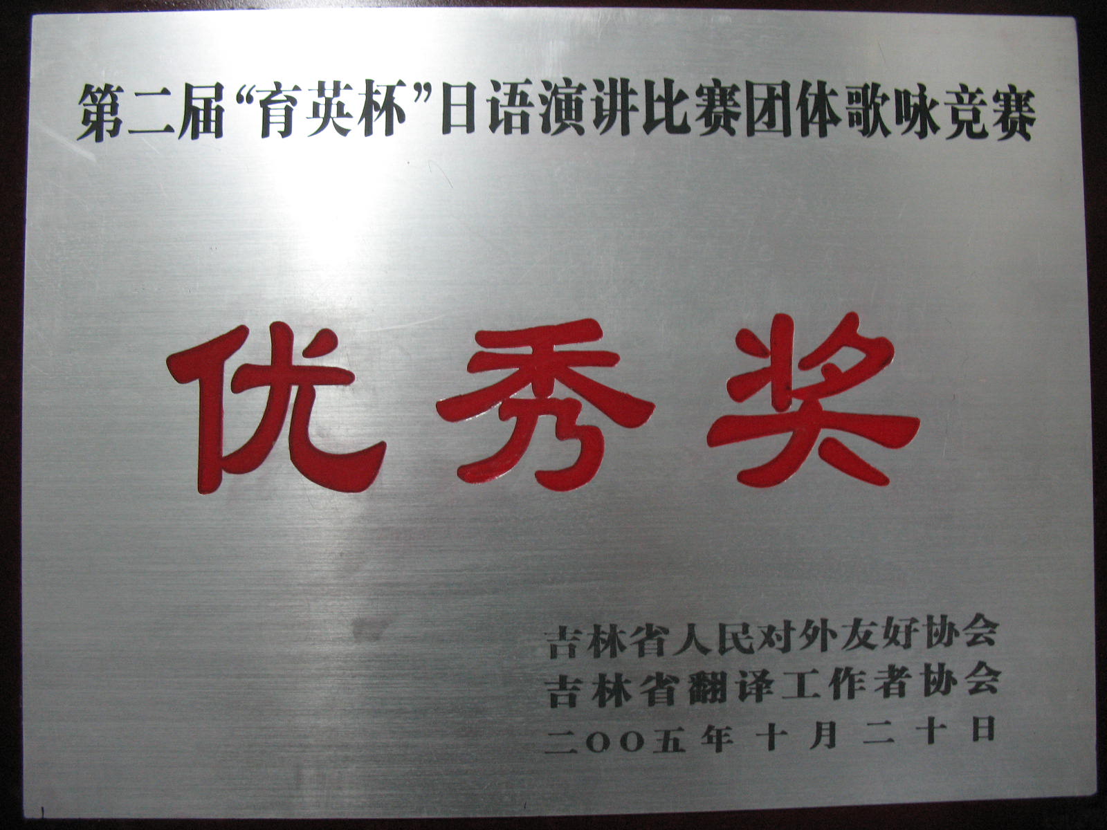 在第二届“育英杯”日语演讲比赛团体歌咏竞赛中获“优秀奖”。