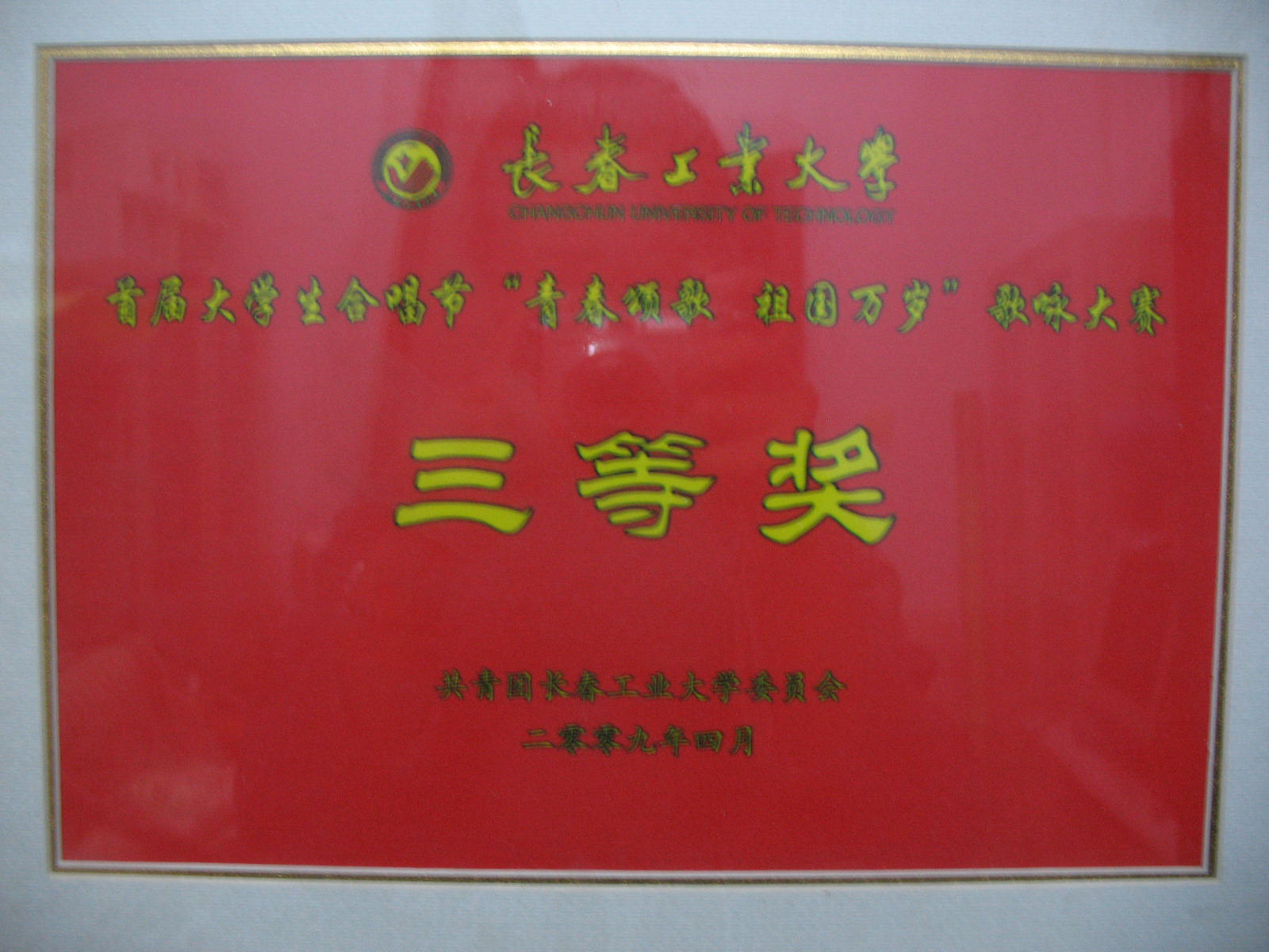 获得长春工业大学201级学生歌咏比赛第三名。