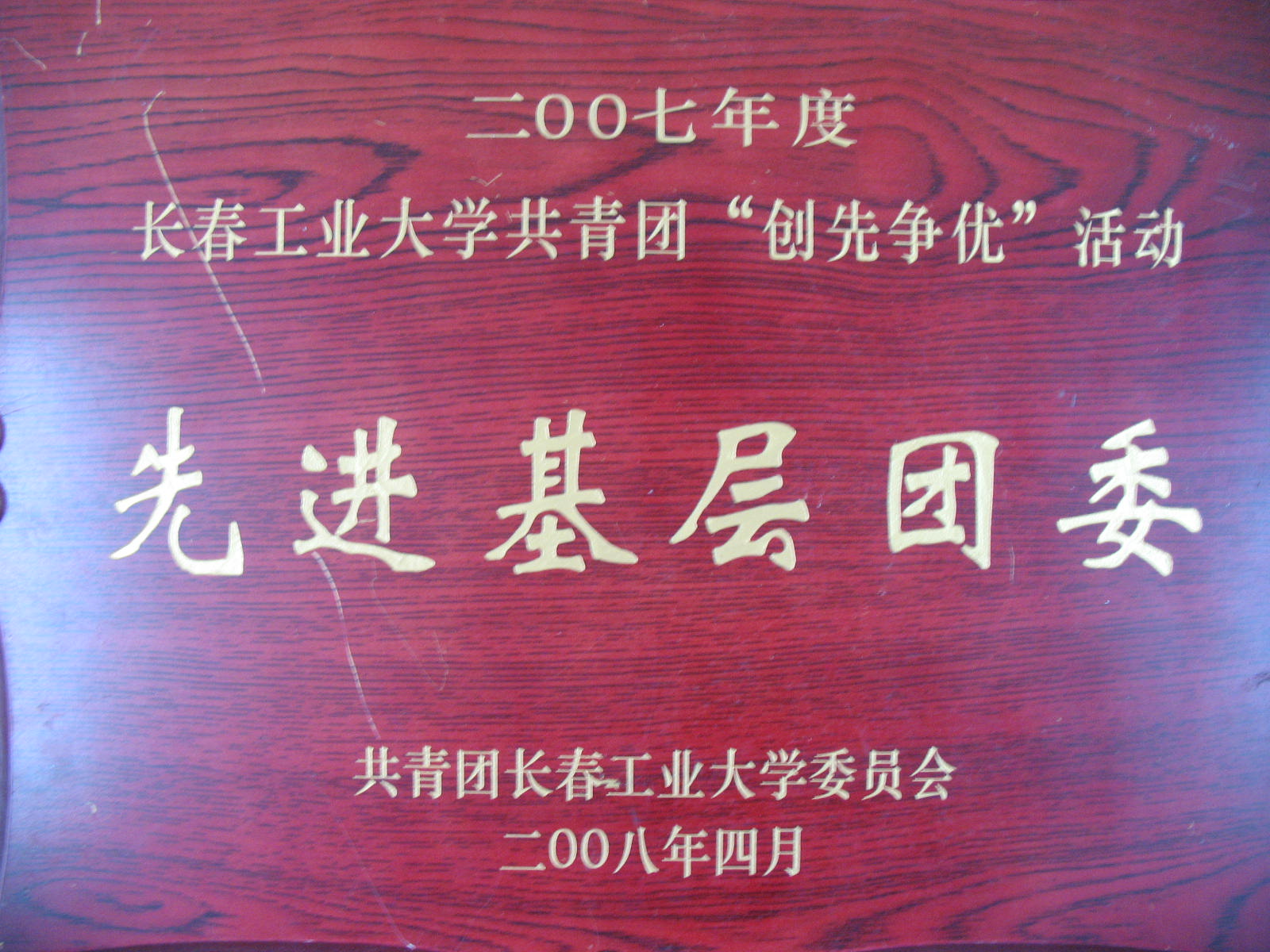 分团委在2008年度在长春工业大学共青团“创先争优”活动中获得“先进基层团委”称号。