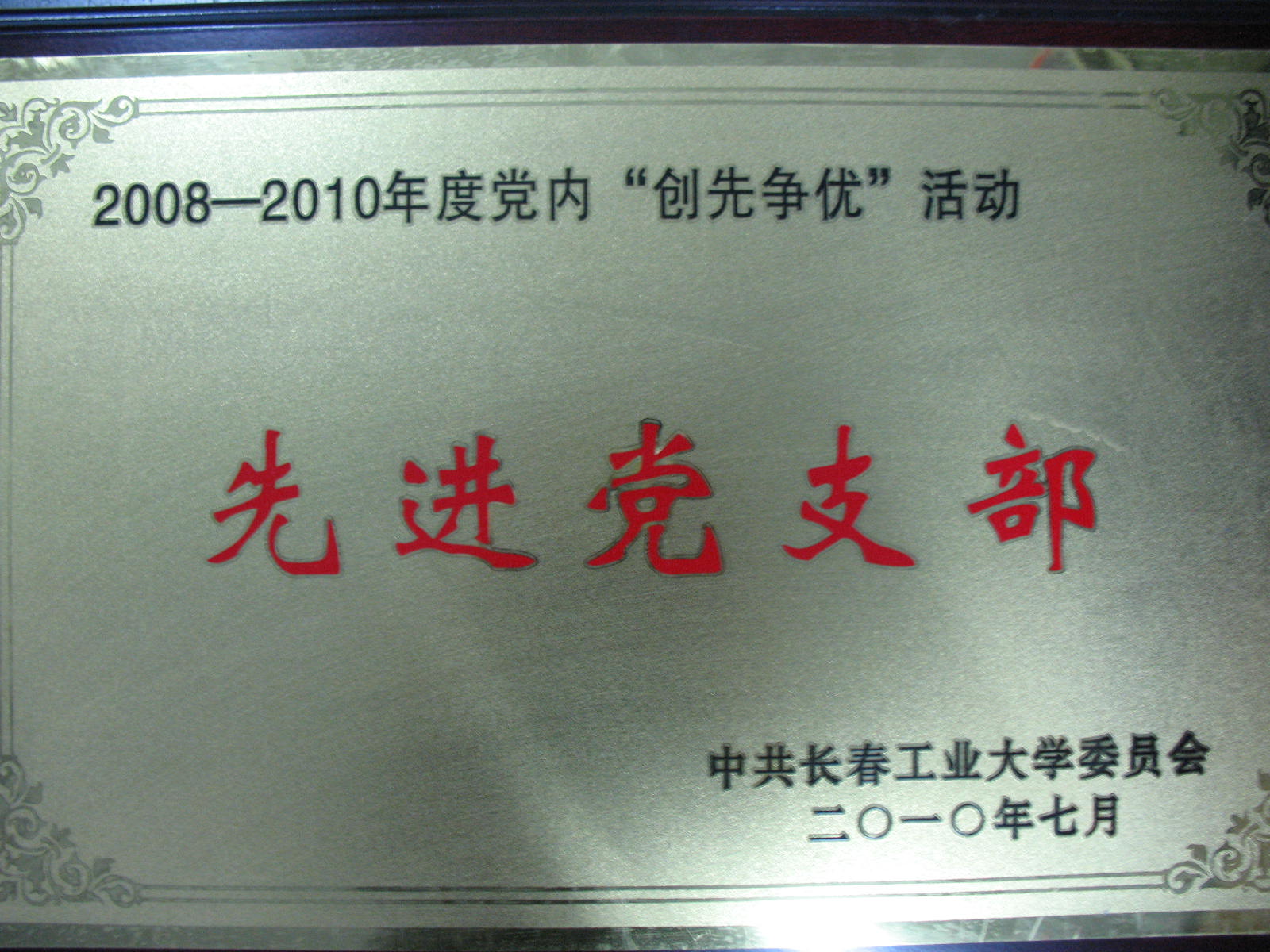 学生党支部在02-04年度“创先争优”活动中被评为先 进党支部 2004年5月 获得有共青团长春工业大学委员会主办的首届挑战杯大学生 创业计划竞赛优秀组织奖 2003年12月 由皇冠现金游戏网