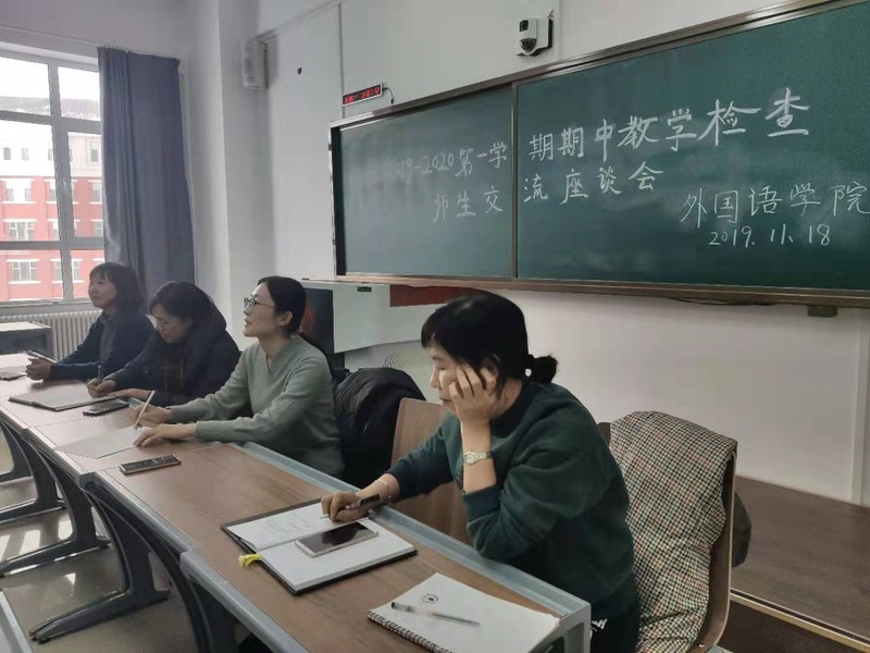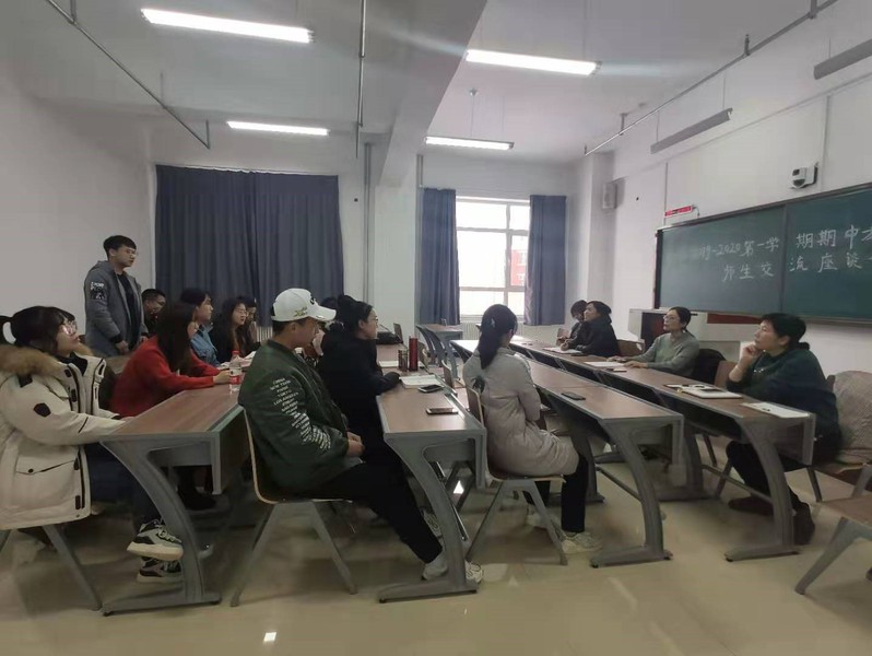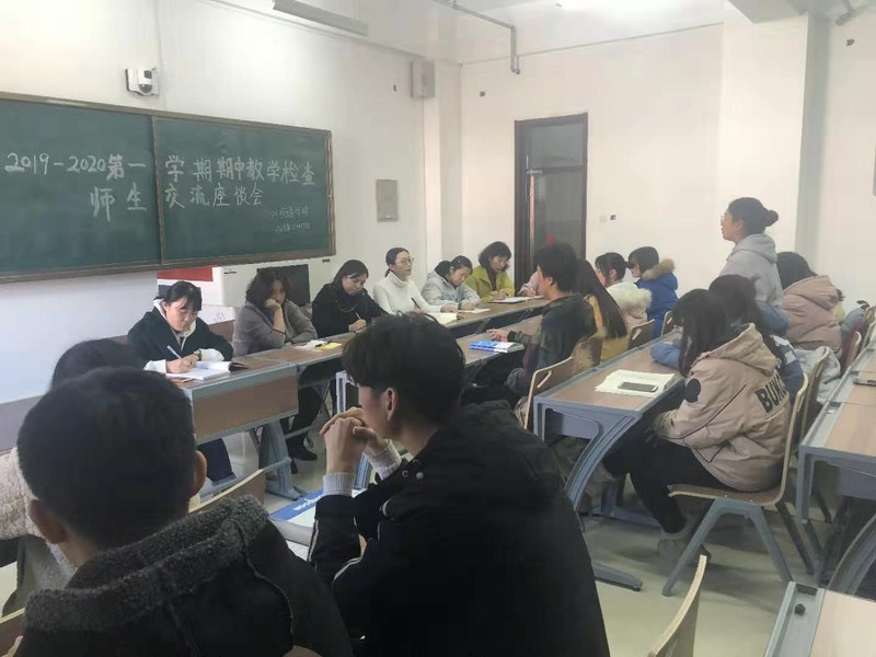 长周爽老师,党委副书记王颖群老师,三位系主任,教学秘书及学生辅导员的组织下,分别于11月15日、18日12:30-13:30在东区主楼333教室召开2019-2020第一学期期中教学检查师生交流座谈会。