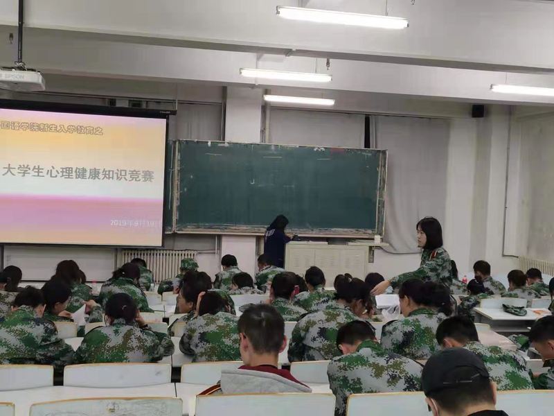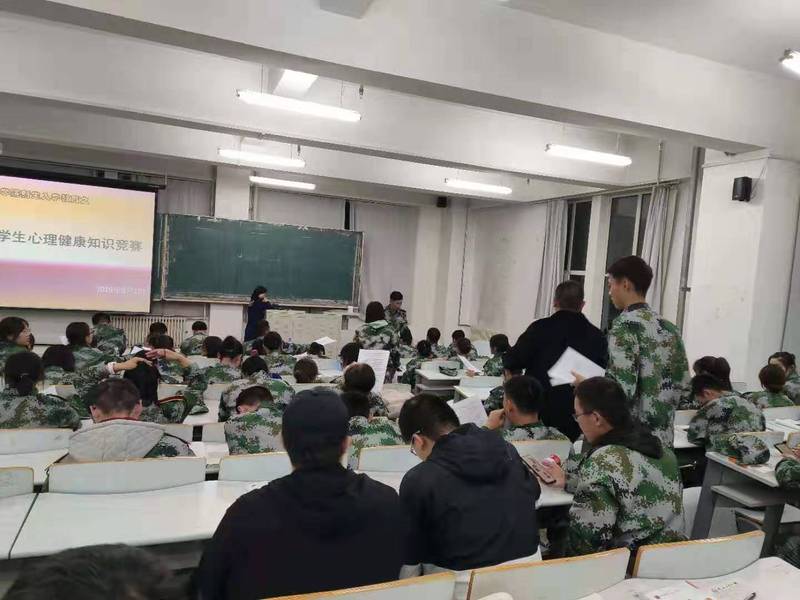 19级新生在军训期间内,在我校心理中心委派的心理健康教育课教师肖芳老师的组织下,于9月19日晚上6点在教图楼201教室举办了大学生心理健康知识竞赛。