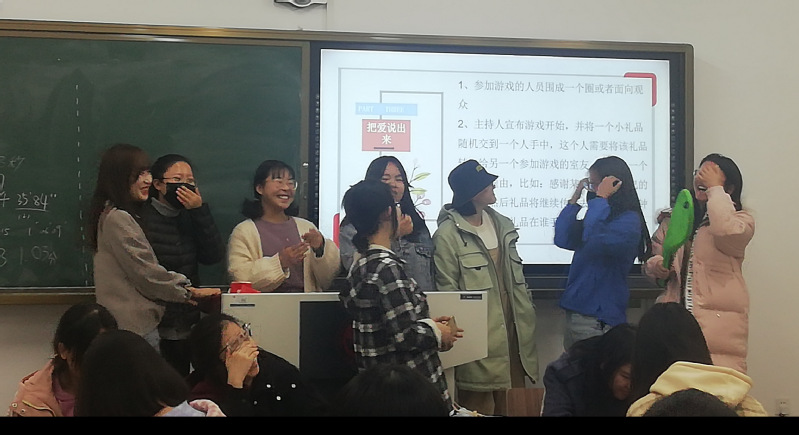 活动环节由三个游戏组成。在第一个游戏“你画我猜”中,寝室六个同学分成两组,在一组进行游戏时,另一组同学负责计时与监督。总用时最长的一组分享成长中感到快乐、感动的事情。经历的分享既锻炼了同学们的表达能力,拉近了室友关系,也让同学们在讲与听的过程中重温了经历过的美好与感动,并从中汲取了面对现在和未来的勇气与力量,对待生活的珍惜与热爱,对待社会的感恩与善意。
