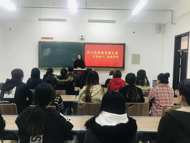 首先,王书记对同学们说,要以黄文秀同志为榜样,不忘初心、牢记使命,勇于担当、甘于奉献。赵老师说要学习黄文秀同志不忘初心、一心为民、默默付出、甘于奉献的精神。刘老师引导同学们发表自己的感想,以及黄文秀事迹对今后自己的学习工作的意义。在三位老师的倾情演讲下,同学们都对黄文秀同志事迹有了更为深刻的认识。