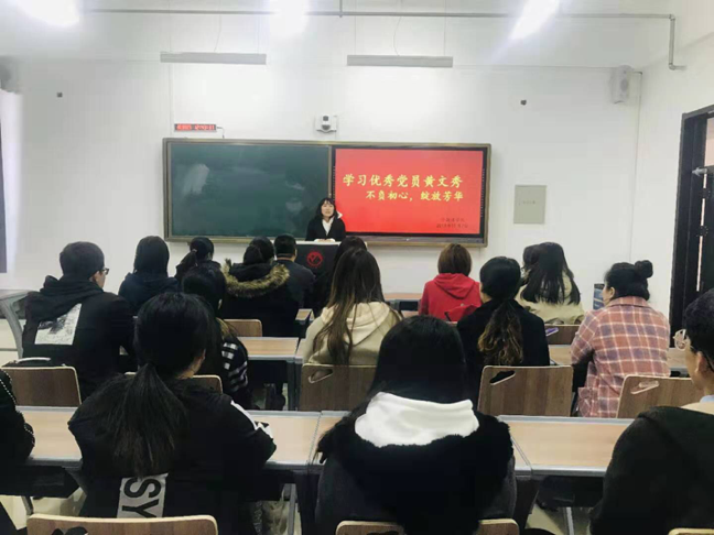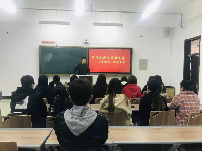 党委书记王颖群老师、团委书记赵海涛老师和辅导员刘明慧老师以及学生党支部,于10月25日上午,在教学主楼433教室开展了以“不忘初心,绽放芳华”为主题的学习优秀党员黄文秀活动。