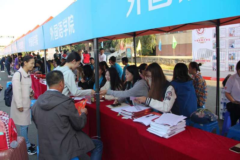 的工作人员热情迎接2019级新生和学生家长。