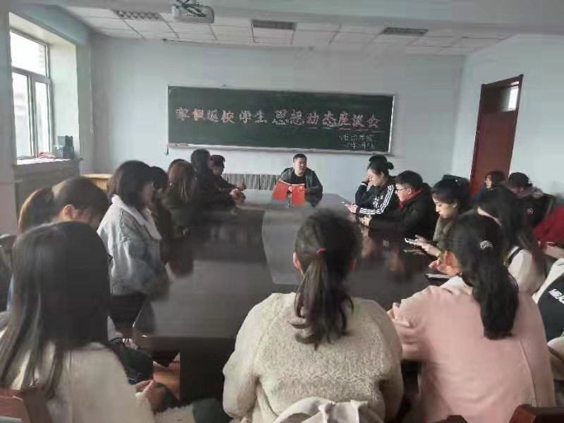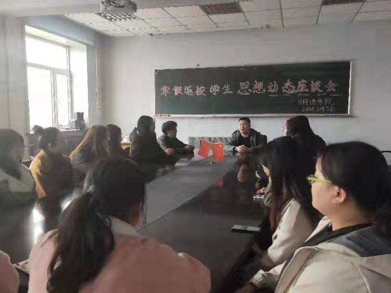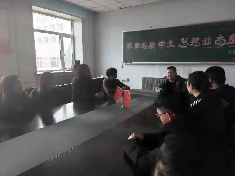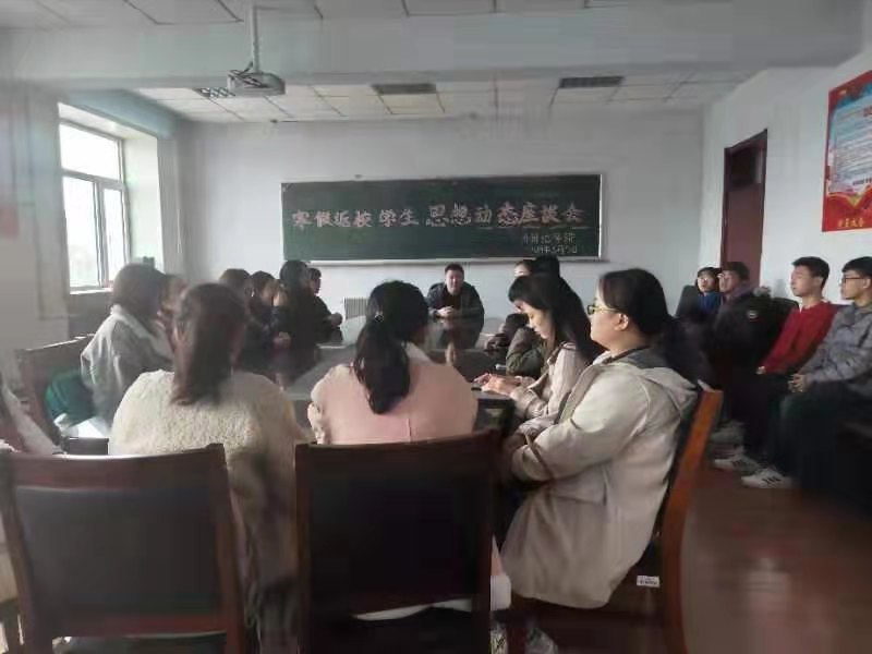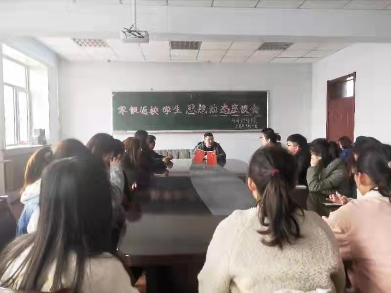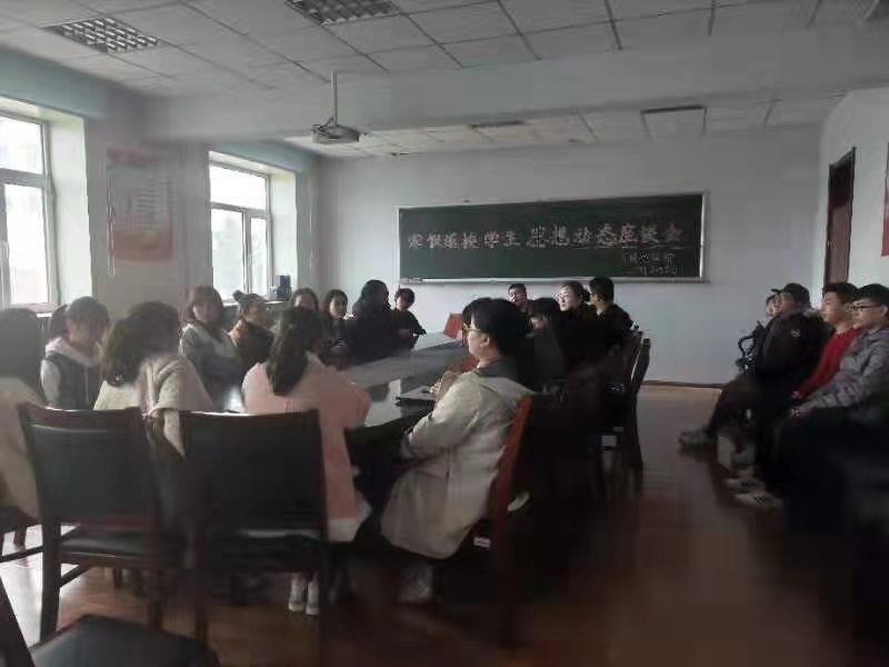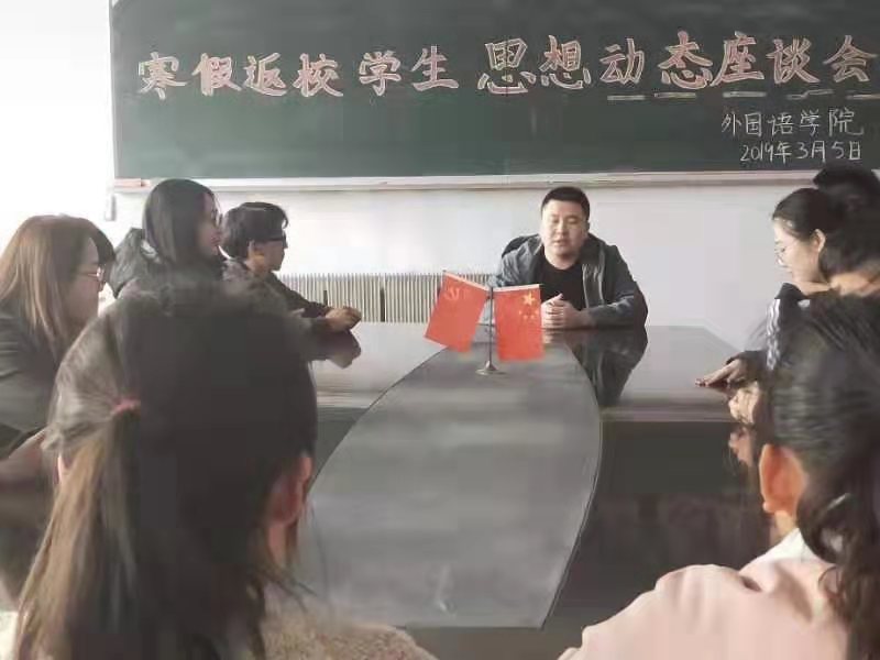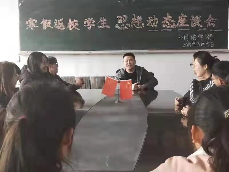在外语楼三楼学生会议室举行了2018年寒假返校学生思想动态座谈会。团委书记赵海涛老师及16、17级部分学生代表出席了此次会议。