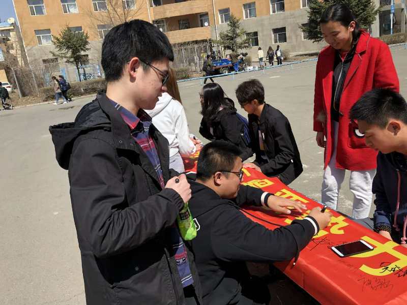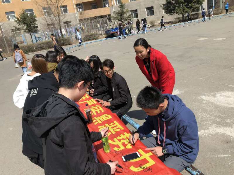学生代表们在“扫黑除恶”横幅上签字,并成功号召了同学们在该横幅上签字以表决心,提高维权意识和学习维权知识。此次活动氛围热烈,同学们反应积极。