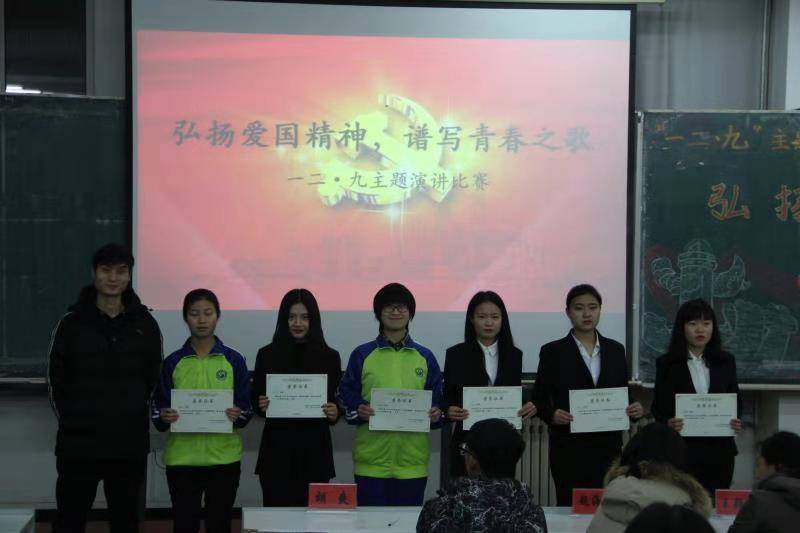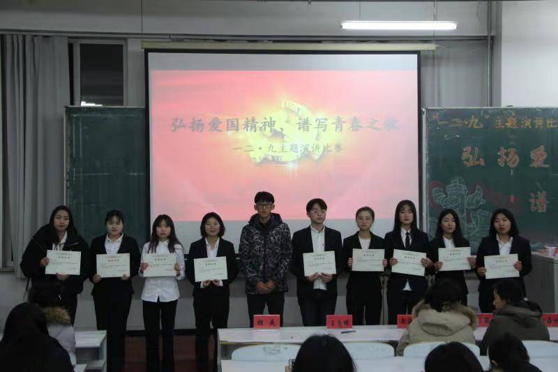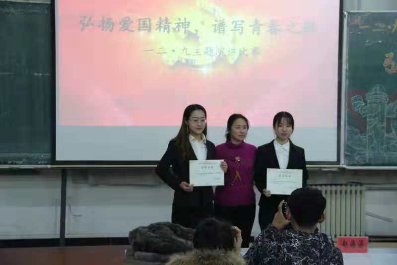 在教图楼301开展了“一二·九”运动演讲大赛。党委副书记王颖群、团委书记赵海涛、导员助理刘海林以及16级学生干部出席了本次大赛。