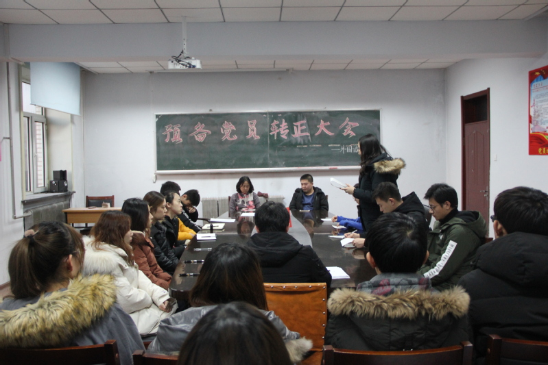 党委副书记王颖群、团委书记赵海涛领导组织并在外语楼召开了预备党员转正大会。