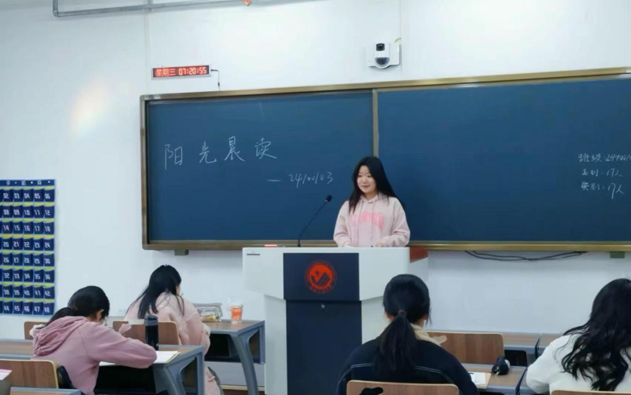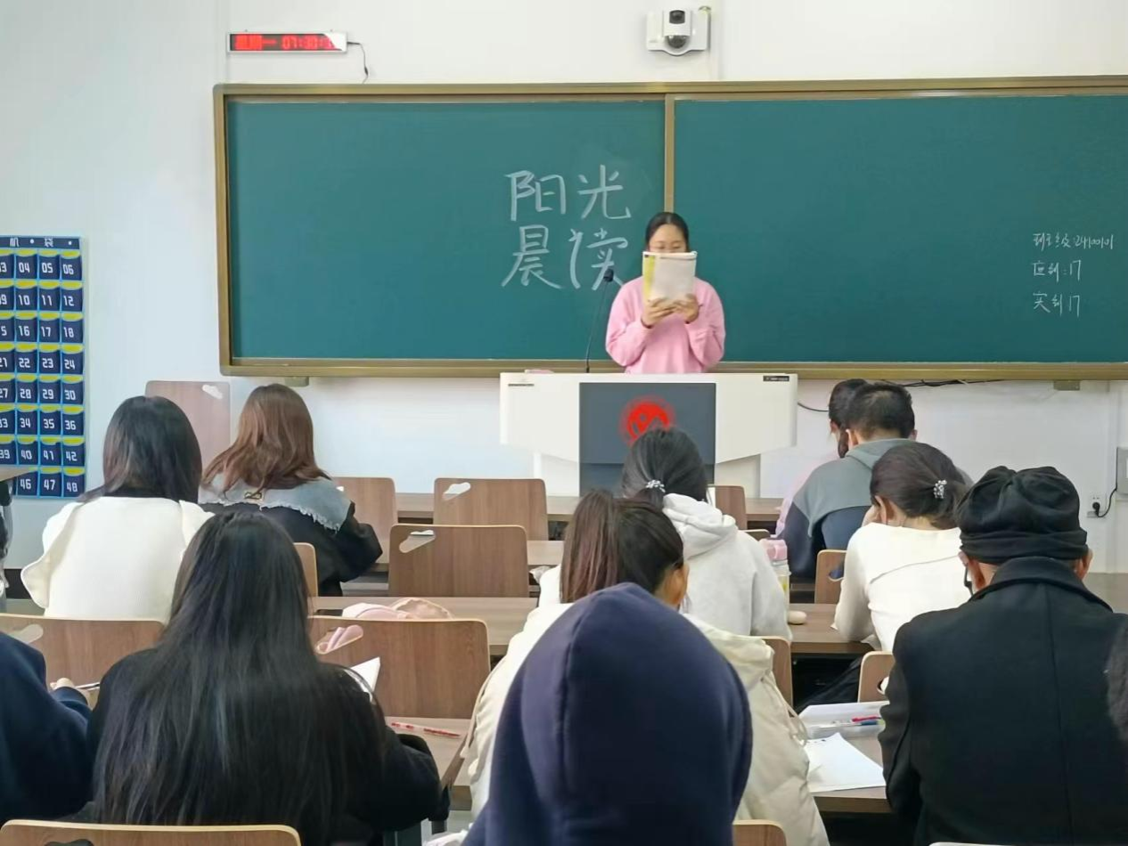 2024级学生,旨在全方位提升同学们的语言能力与专业素养。在自习室里充满着学子们的朗朗读书声,以诵读方式开启每日学习。晨读是学生们提升语言能力的重要途径,不仅能锻炼口腔肌肉、优化发音清晰度与流畅度,更可增强口语表达的流利度与感染力,为同学们自我提升提供有效助力。