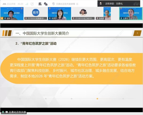 师生搭建了高效的赛事学习与交流平台,有效弥补了师生在创新创业赛事筹备过程中的知识短板,进一步激发了学生的参赛积极性与创新实践活力。参会师生普遍反映,本次指导内容详实、指导性强,受益匪浅,将把所学知识融入赛事筹备实践,力争在后续赛事中斩获佳绩。